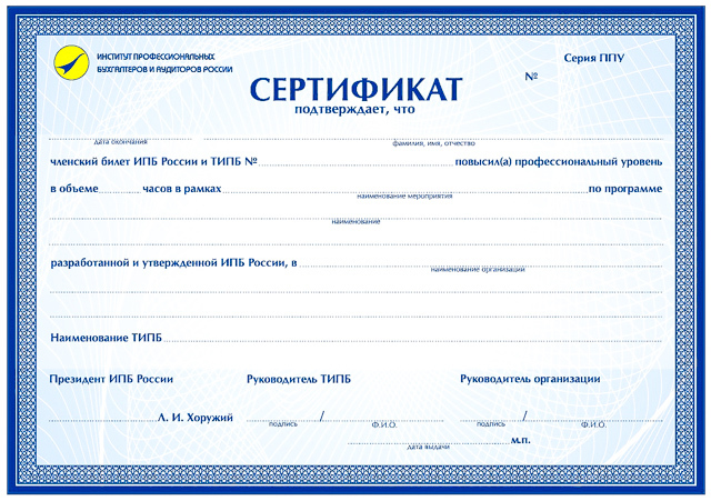 Для профбухгалтеров возможно также получение сертификата ИПБ России